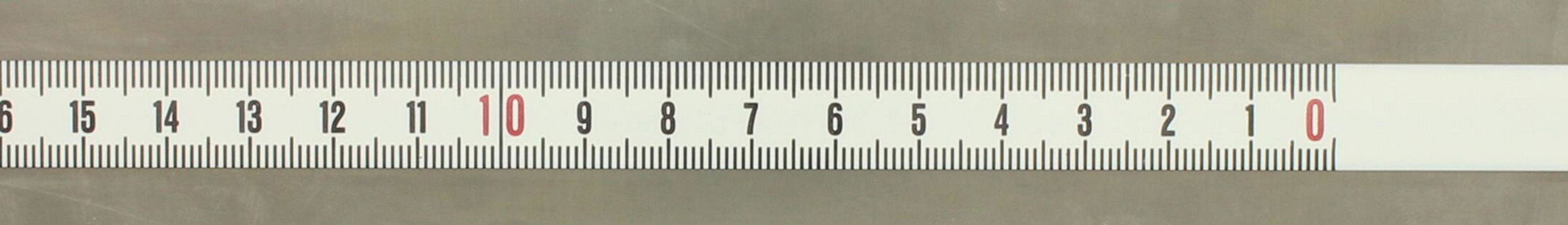 Az öntapadós acél mérőszalag hátsó felülete öntapadós ragasztóval van bevonva, mely biztos rögzítést tesz lehetővé majd minden felületen. Ezen öntapadós mérőszalagok számozása balról jobbra történik.