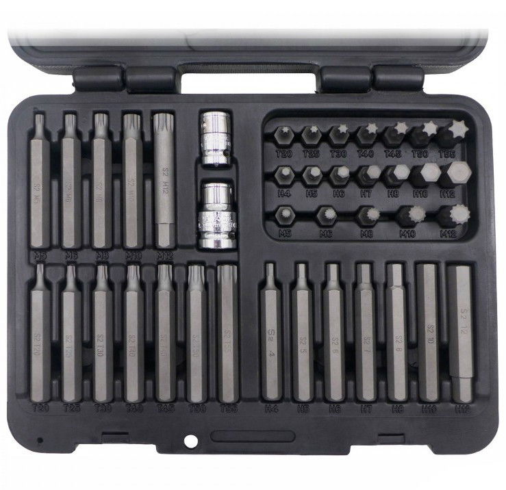 - torx bit, rövid, 30 mm hosszú: T20, T25, T30, T40, T45, T50, T55