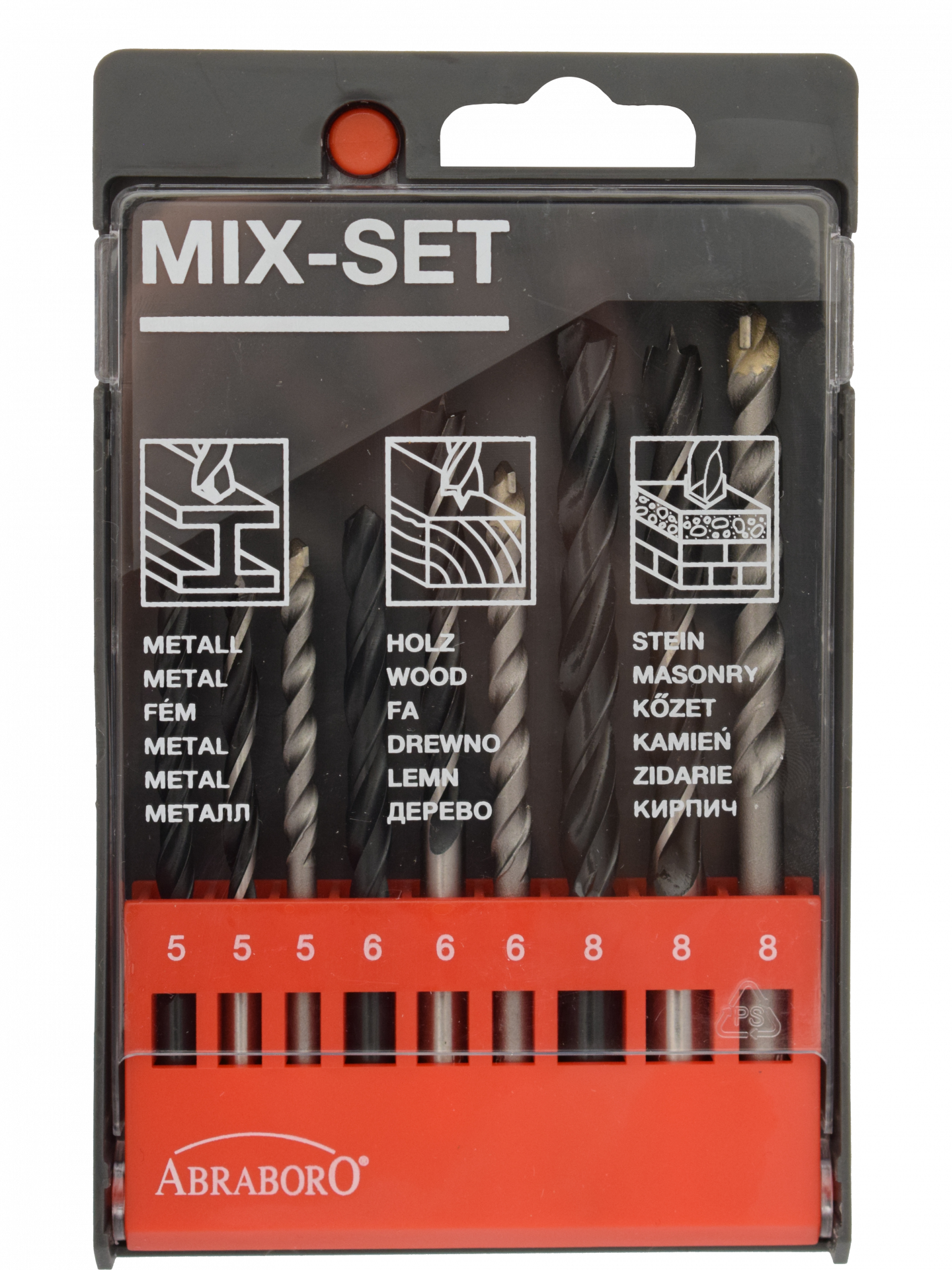 Abraboro 9 részes HOBBY fúrókészlet (fém/fa/kőzetfúró), műanyag dobozban
