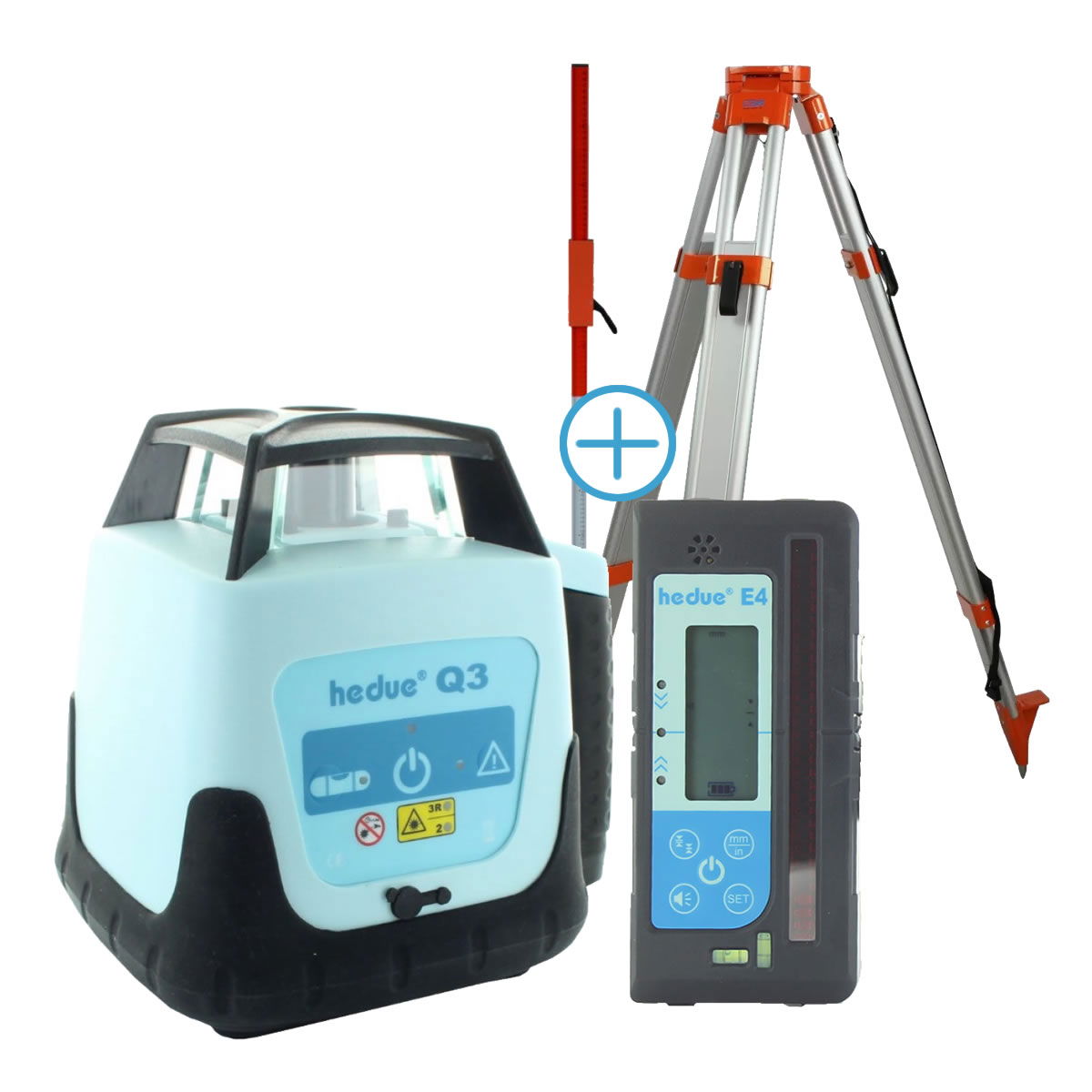 hedue Q3 forgólézer + hedue E4 digitális jelfogó + állvány + mérőléc csomag