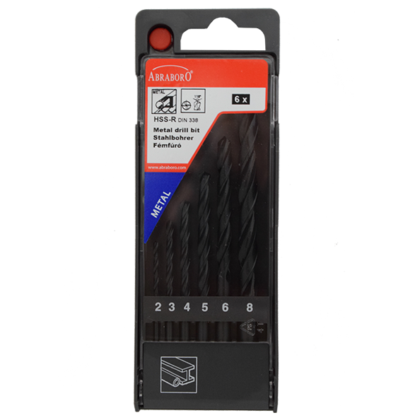 Abraboro HSS-R 6 részes fémfúró készlet, műanyag dobozban