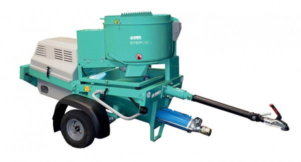 IMER Step 120 GR-M 230V vakológép keverőegységgel hagyományos előkevert vakolat és habarcs, szálerősítésű és tűzálló habarcsok, tűzálló anyagok, önterülő esztrichek, keverésére és felszórására valamint megerősítő injektálási műveletekhez